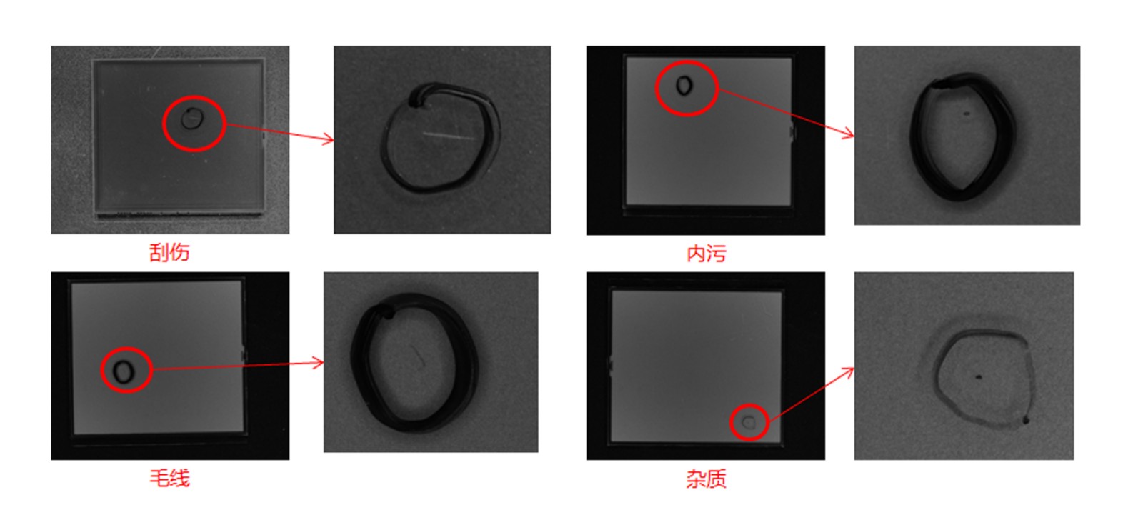 检测缺陷 | 刮伤、毛线、内污、气泡、杂质、裂痕、切割不良、贴歪、白点、水纹、破损等缺陷 |